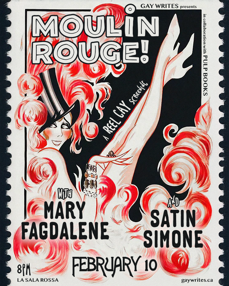 UPCOMING EVENTS UPCOMING EVENTS UPCOMING EVENTS REEL GAY:Moulin Rouge!Gay Writes presents a REEL GAY screening of Moulin Rouge!, featuring drag & burlesque performances, and live commentary. La Sala RossaMontreal, QCdoors: 7pmshow: 8pm TICKETS FEBRUARY 10